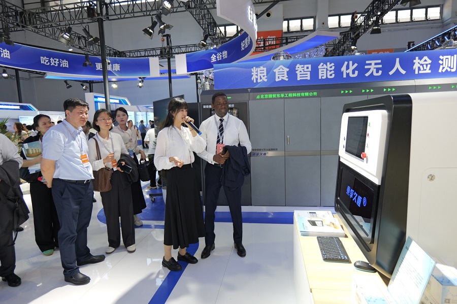 本次大會我院組織儲運所、質(zhì)量安全所、品質(zhì)營養(yǎng)所、加工所、檢測中心、中心實驗室六個部門以及所屬科技型企業(yè)國貿(mào)東孚參展,協(xié)同佳禾食品、谷道糧心、輕訴健康、星創(chuàng)儀器、天合云途、同福健康六家合作企業(yè)組團亮相,現(xiàn)場通過實物展示、產(chǎn)品品鑒、視頻演示等多種形式,結(jié)合AI機器人講解和趣味互動,全方位、多角度、創(chuàng)新性展現(xiàn)科技創(chuàng)新能力和院企合作成果。其中系列健康食品以及應急加工成套裝備、智能化無人裝備等受到與會代表的廣泛關(guān)注,多個省(市)糧食主管部門主要負責同志帶隊到展位參觀交流、參與品鑒,多家倉儲和檢驗檢測企業(yè)到展位洽談業(yè)務、咨詢綠色儲糧技術(shù)合作,新華社、央視新聞、中國新聞網(wǎng)、中國商報、北斗融媒等十余家中央、地方媒體對科學研究院系列科技成果和首席科學家進行采訪報道,還吸引安哥拉、阿根廷等外國駐華使節(jié)、FAO等有關(guān)國際組織代表等前來參觀交流和品鑒。