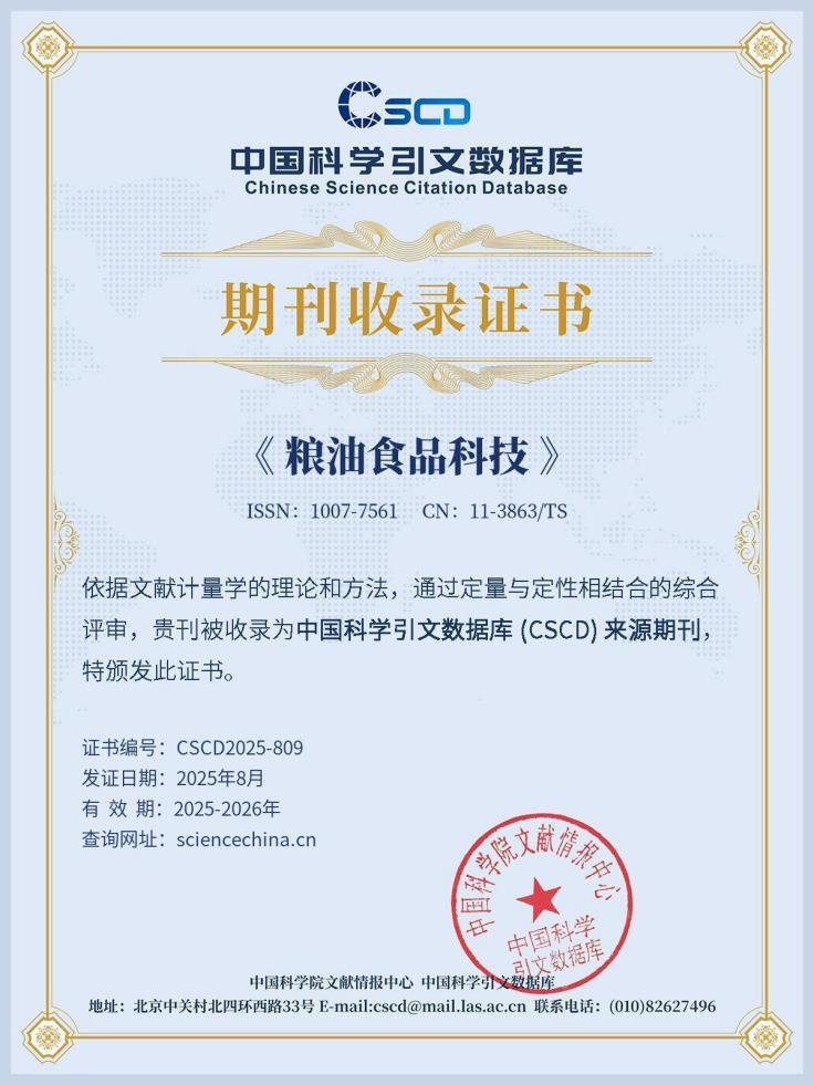 《糧油食品科技》期刊被多家國內外數據庫收錄